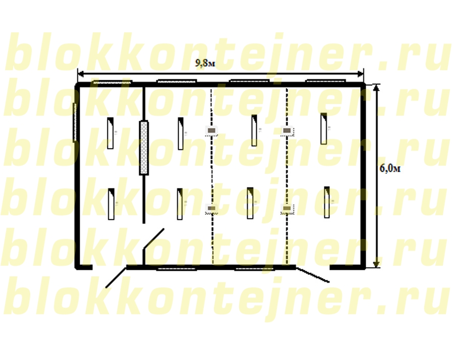 Блок - модуль  6,0*9,8*2,5 – 1 шт., состоящий из БК размером 6,0*2,45*2,5-4шт.;