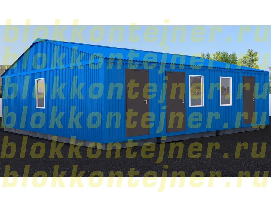 Модульное офисное здание из 4-х девятиметровых БК, с двухскатной крышей, г.Волжский