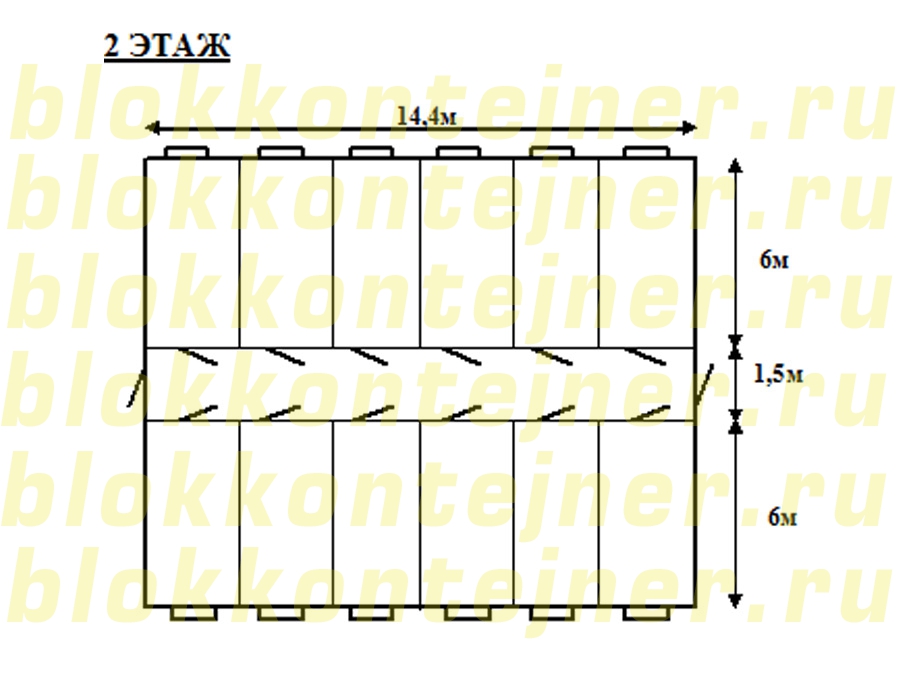 Модульное общежитие в два этажа из 24шт. блок-контейнеров 6м